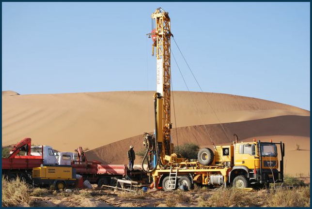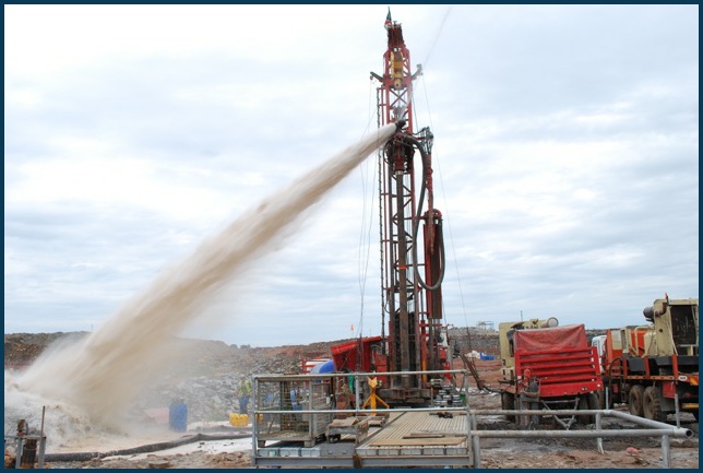 Drilling of a large diameter borehole in airlift technique for the installation of screens and casing